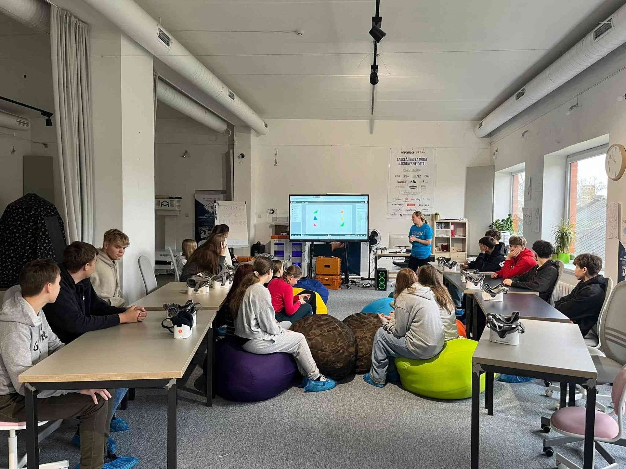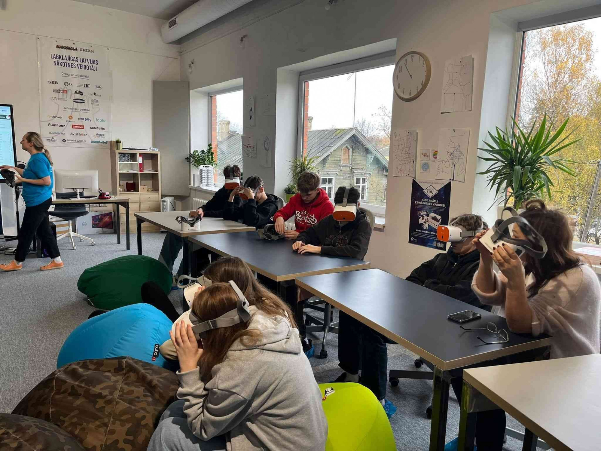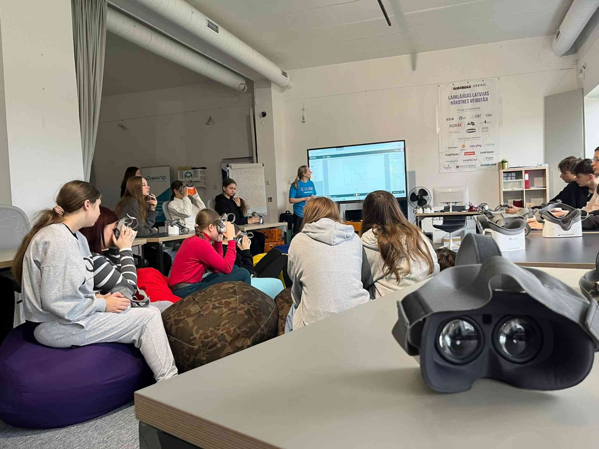 7. – 9. klašu skolēni virtuālajā vidē aizrautīgi pētīja muzeju ar Class VR virtuālās realitātes brillēm, veidoja trasi roboautomobīlim.